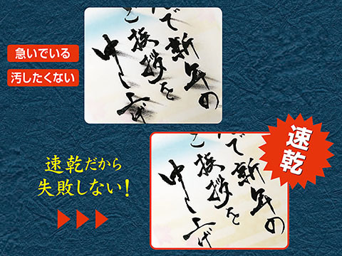 | パイロットの筆ペン「瞬筆(しゅんぴつ)」は、1秒で乾く「速乾インキ」を搭載。筆跡がすぐに乾くので、手や書いたものが汚れません。サインペン感覚で扱えて、ソフトタッチで抑揚が表現しやすいため、筆ペン経験がない方にもおすすめです。